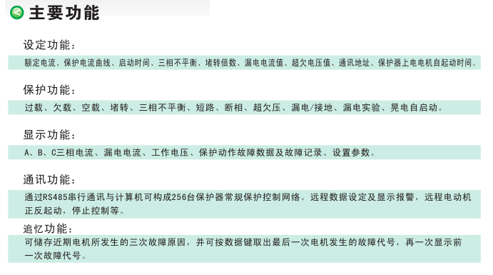 TDS900-Y系列電動(dòng)機保護器具有先進(jìn)的現場(chǎng)總線(xiàn)接口,基于微處理器技術(shù)開(kāi)發(fā)研制的電機保護與控制裝置。由微處理器來(lái)執行電機的保護與控制功能,完成對電機操作次數的統計、自診斷以及與上位機的通訊等。TDS900系列電動(dòng)機保護器為電機提供的完備保護,避免了因電機過(guò)載過(guò)熱、堵轉、欠壓、輕載、斷相、三相不平衡、接地等可能故障導致的生產(chǎn)事故,最大限度地保證設備運行的有效性與安全,TDS900-Y系列電動(dòng)機保護器采用RS485通訊接口設計,保證了與上位機、PLC、DCS通訊的快速可靠,同時(shí)能快速響應上位主機的實(shí)時(shí)查詢(xún)等要求并執行相應操作。使用簡(jiǎn)單方便,安全可靠。